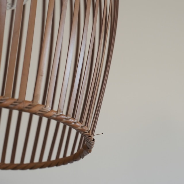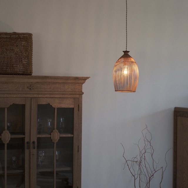 細く整えられた竹を縦に組み上げた、軽やかな造形のペンダントライトです。