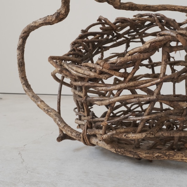 太さの異なる蔓をそのまま活かした、造形的な籠。