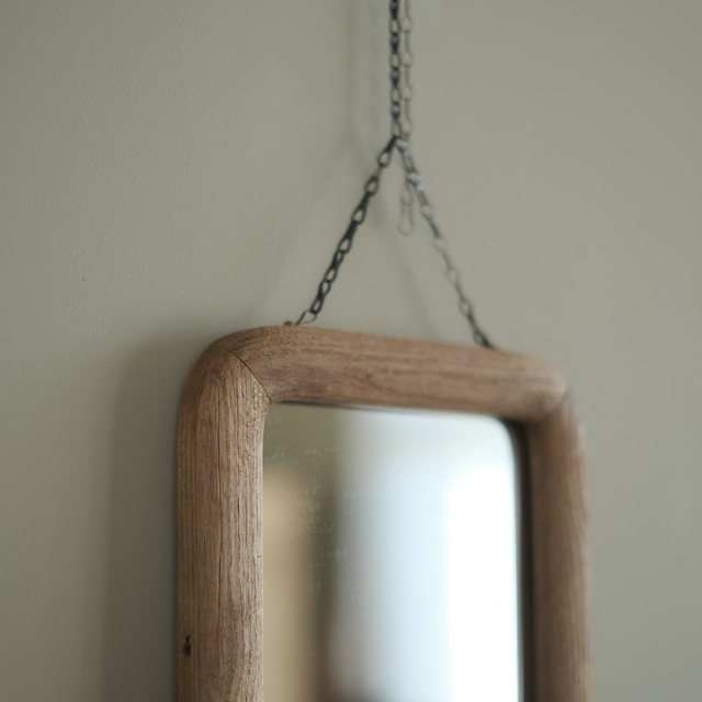 壁掛け鏡|鎖で吊るす小さな木枠ミラー