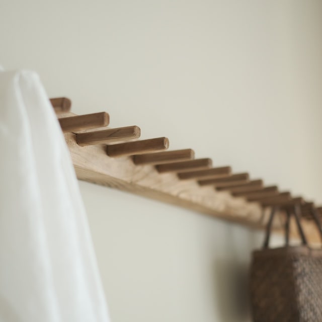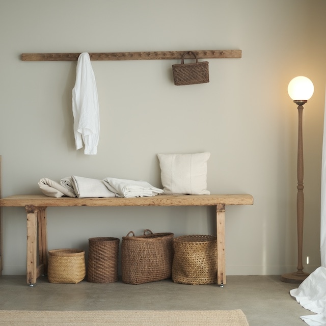 玄関や寝室、作業部屋などで、日常のものをラフに掛けておける収納です。